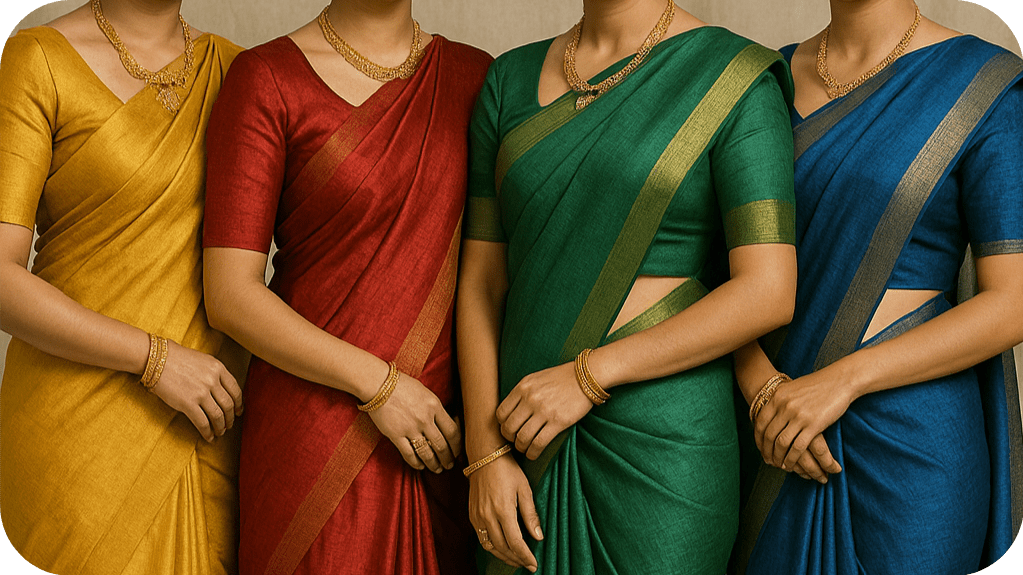 - Available in Pure Fabrics and Sarees – wide colour range and dyeable fabric